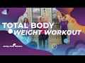 Description: After a quick cardio warm-up, train and strengthen your entire body using dumbbells, a chair, and a mat (or towel). Start with your lower body preforming variations of squats, lunges, and plie’s then move on to the upper body using dumbbells and your own body weight. Over time you’ll see increased strength and stamina in your daily activities. (Weights Required)